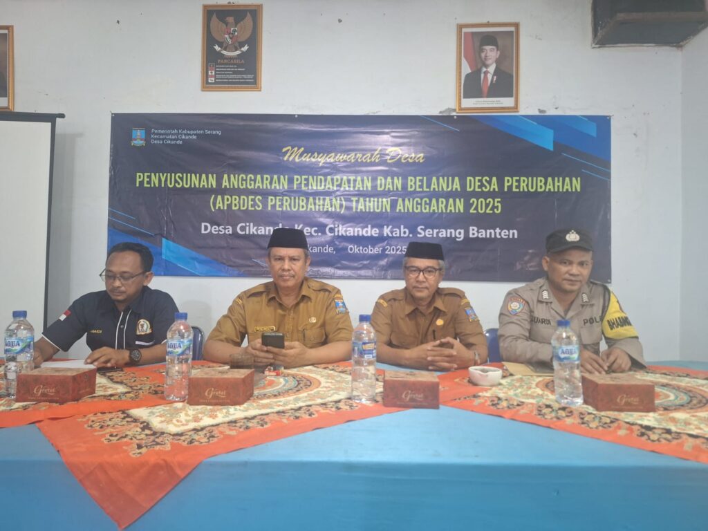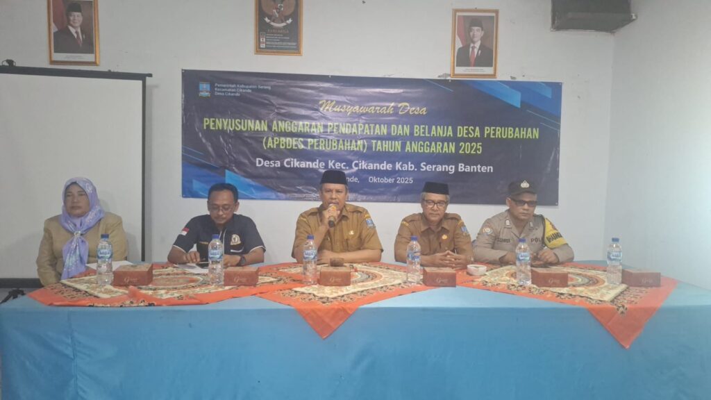 CIKANDE, – Pemerintah Desa Cikande, Kecamatan Cikande, Kabupaten Serang, menggelar Musyawarah Desa (Musdes) dalam rangka penyusunan Anggaran Pendapatan dan Belanja Desa Perubahan (APBDes-P) Tahun Anggaran 2025, bertempat di Aula Kantor Desa Cikande, pada Senin, 14 Oktober 2025.